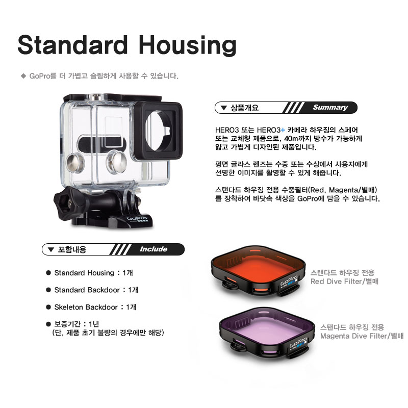 고프로 HERO3+ Standard Housing /HERO3, HERO3+용 스탠다드 하우징