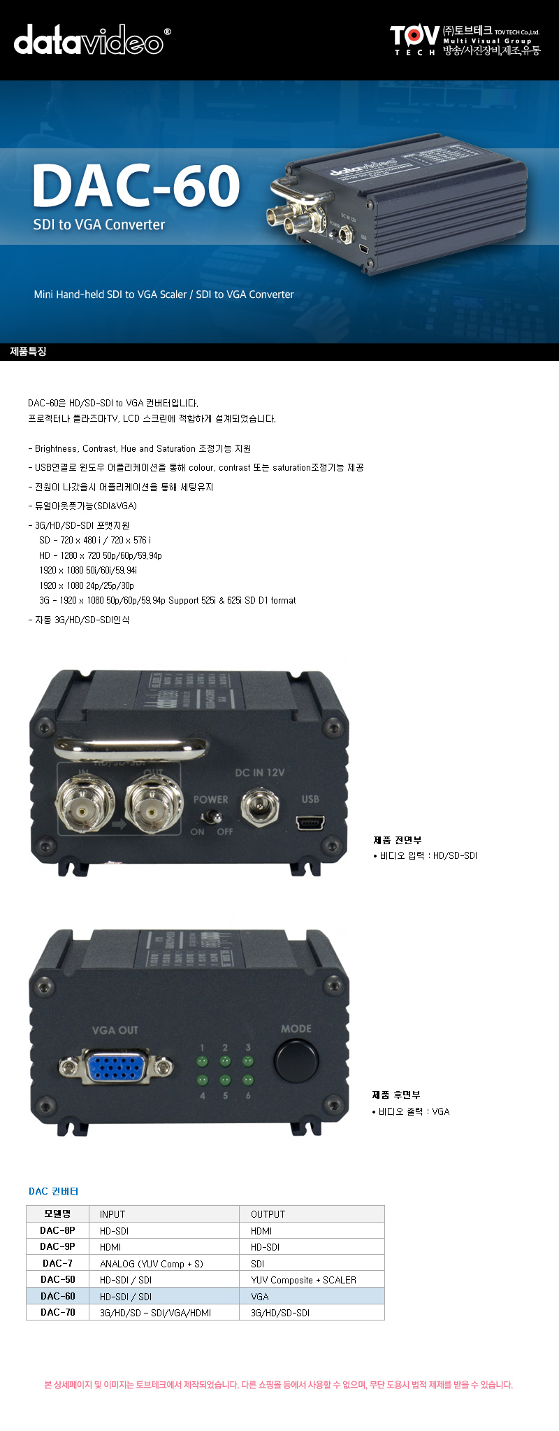 데이타비디오 DAC-60 컨버터 (HD/SD-SDI to VGA)