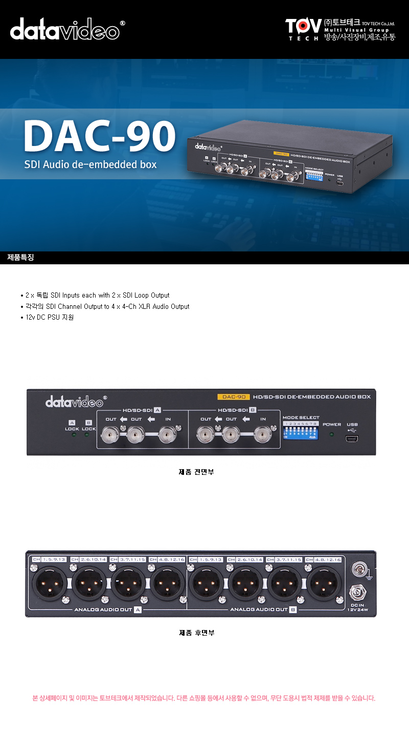 데이타비디오 DAC-90 컨버터 (SDI Audio de-embedded box)