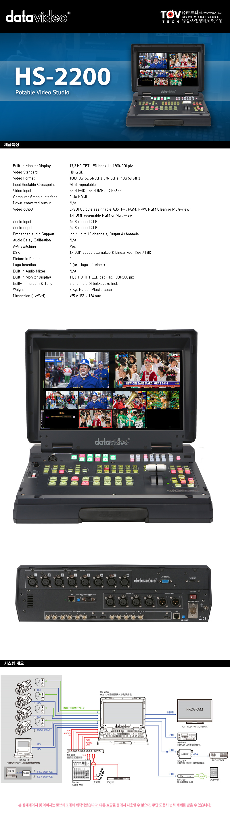 데이타비디오 HS-2200 포터블 비디오 스튜디오 /스위쳐+모니터+인터컴+탈리 올인원 시스템