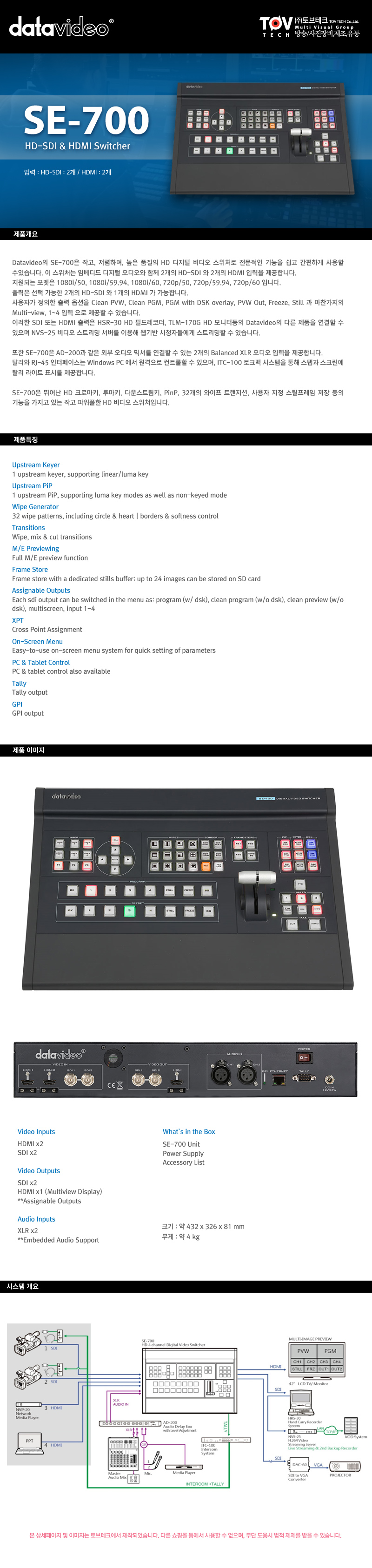 데이타비디오 SE-700 디지털 비디오 스위쳐 /HD-SDI 2입력/HDMI 2입력
