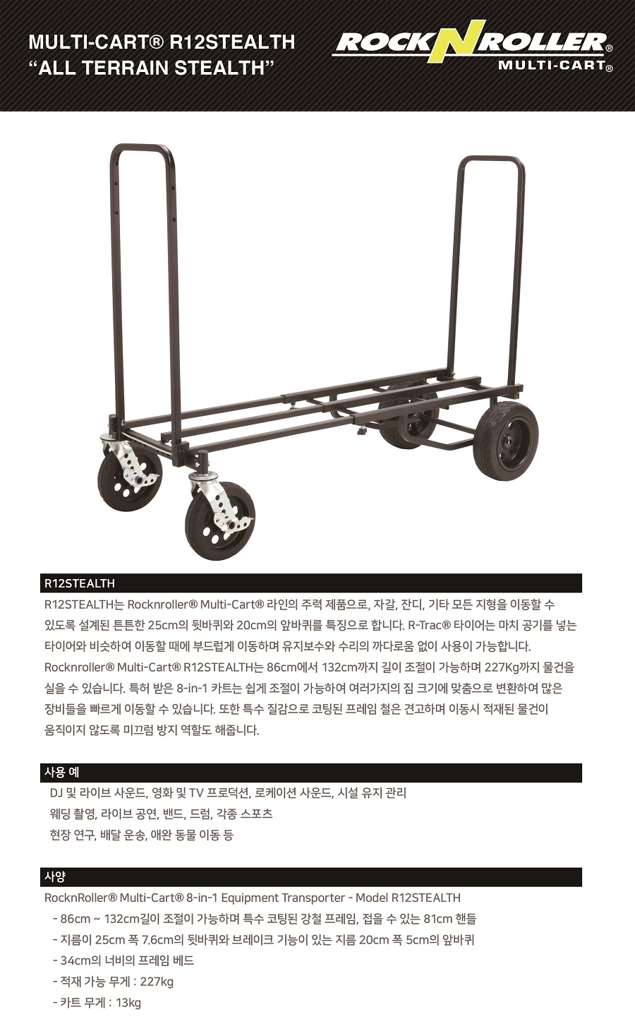 락앤롤러 RocknRoller Multi-Cart R12STEALTH “All Terrain Stealth”