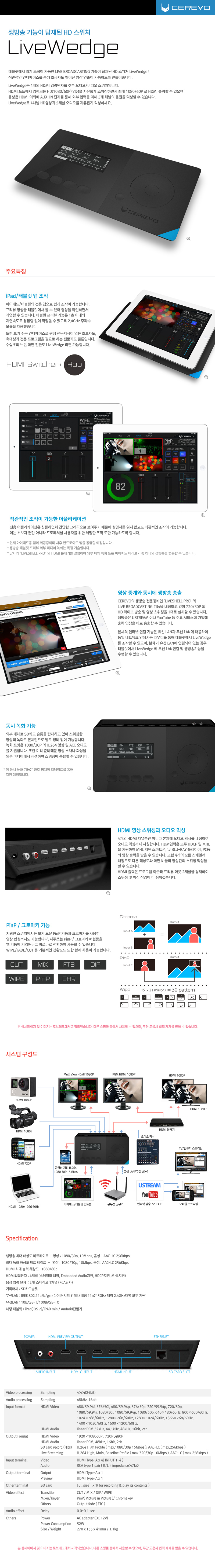 세레보 LiveWedge /라이브웻지/생방송 기능이 탑재된 HD스위처/HDMI 4 INPUT, 2 OUTPUT, AUX 1 INPUT