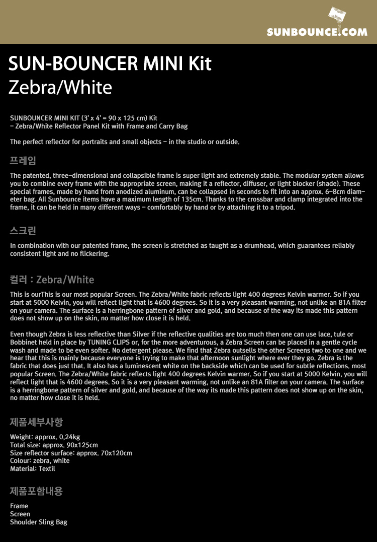 썬바운스 SUN-BOUNCER MINI Kit /Zebra,White 리플렉터 스크린/90 x 125cm/가방 포함