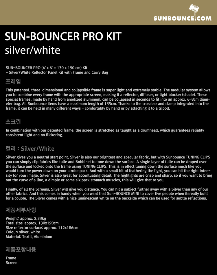 썬바운스 SUN-BOUNCER PRO Kit /Silver, White 리플렉터 스크린/130 x 190cm/가방 포함