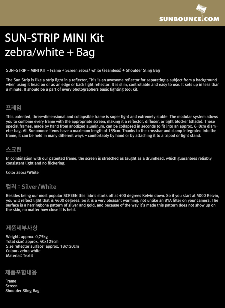 썬바운스 SUN-STRIP MINI 14″ Kit /Zebra,White 리플렉터 스크린/56 x 125cm