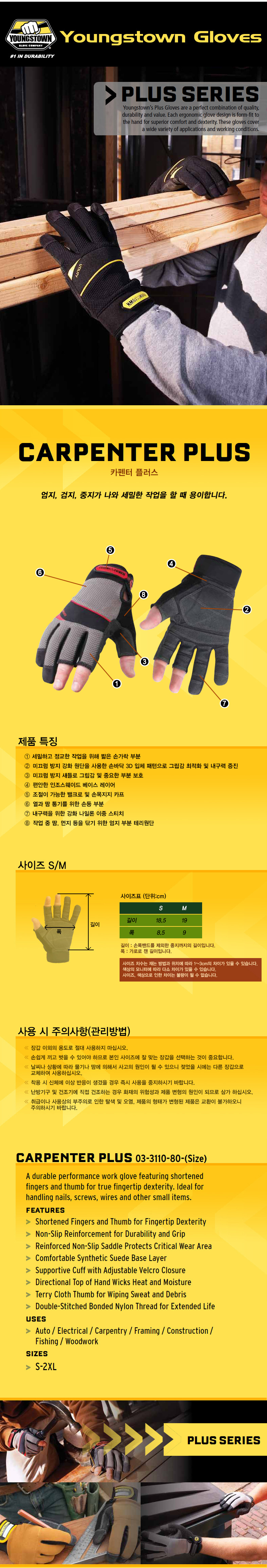 영스타운 Capenter Plus /작업용장갑/세밀한작업용/손가락장갑