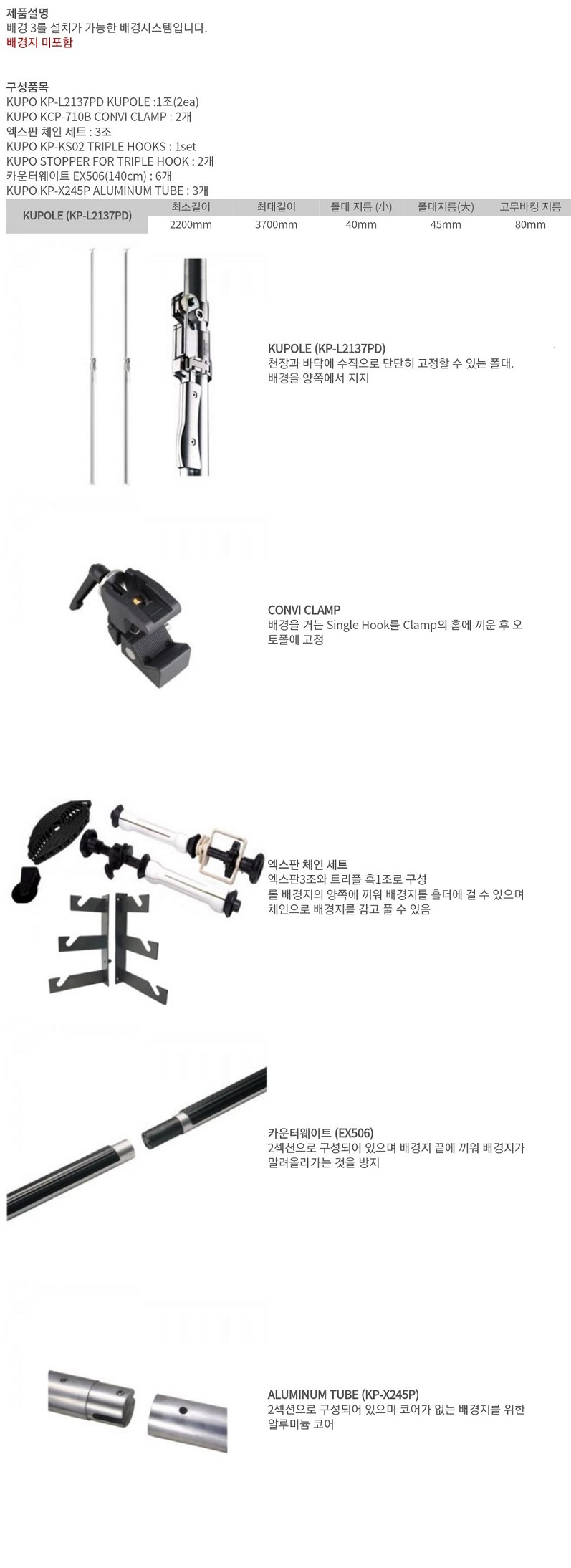 쿠포 KUPOLE 3롤용 배경시스템 (배경지 제외)