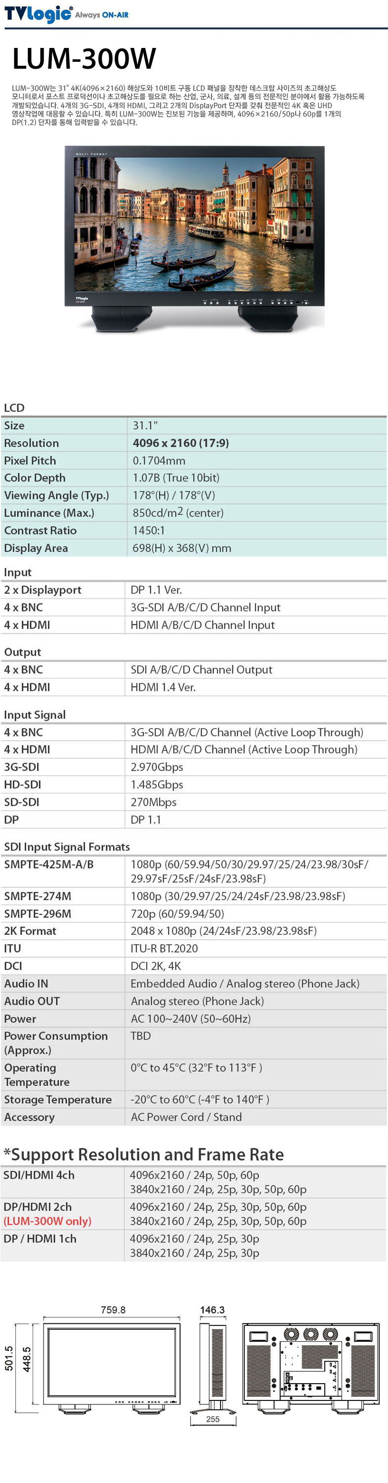 티비로직 LUM-300W /31인치 전문가용 모니터/4K 지원