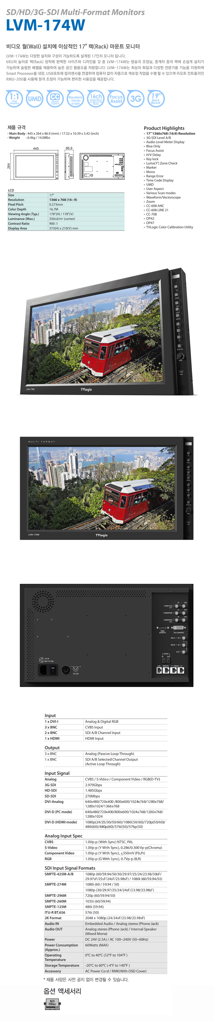 티비로직 LVM-174W /17인치 랙마운트 멀티포맷 모니터/Waveform/Vector