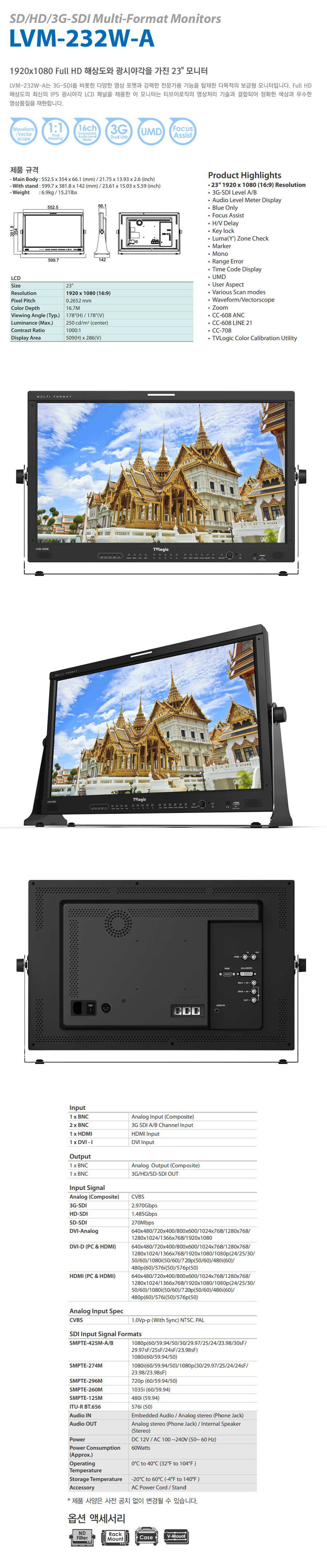 티비로직 LVM-232W-A /1920×1080 해상도와 광시야각을 가진 23인치 모니터