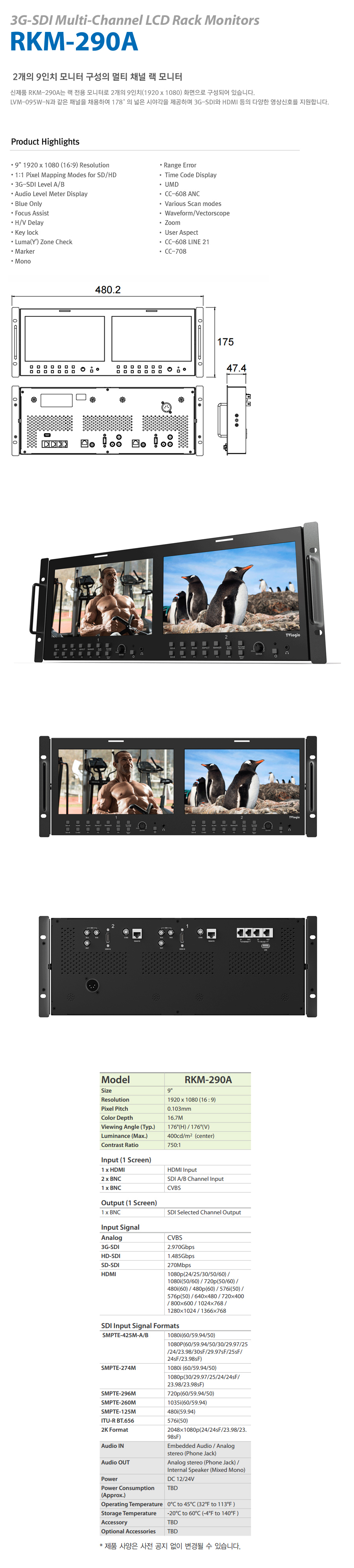 “티비로직 RKM-290A /9인치 모니터 2개의 멀티채널 랙모니터”의 첫 상품평을 남겨 주세요