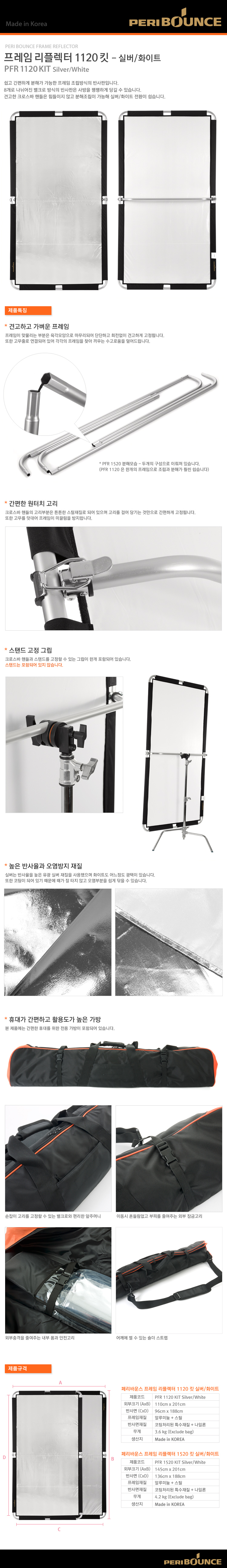 – 쉽고 간편한 분해조립 방식의 프레임 반사판입니다.- 중앙에 크로스바 핸들이 포함되어 있어 스탠드에 고정할 수 있습니다.- 크로스바 핸들과 스탠드를 연결하는 그립이 한개씩 포함되어 있습니다.