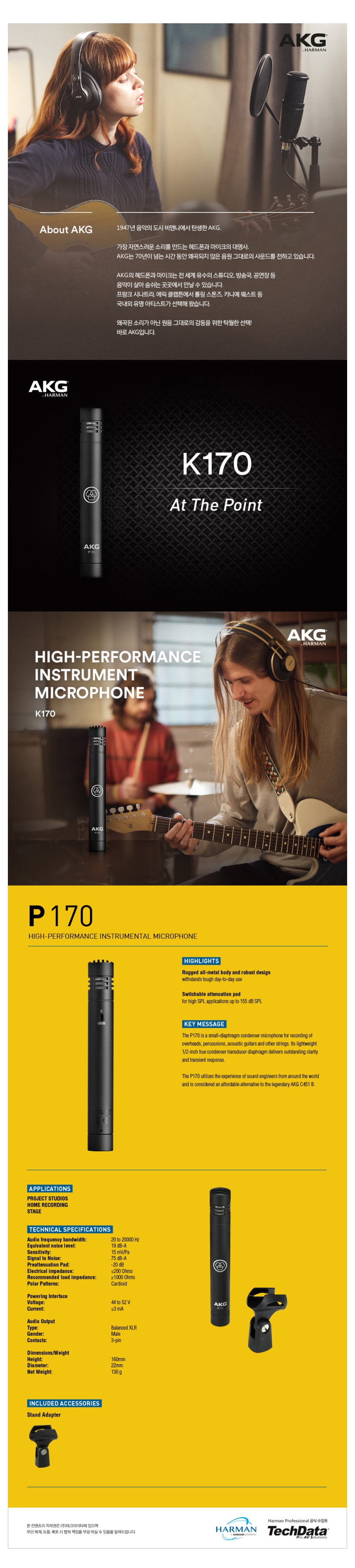 AKG P170 마이크 (콘덴서, 프로페셔널 악기용, 방송용, 유튜브) 29%