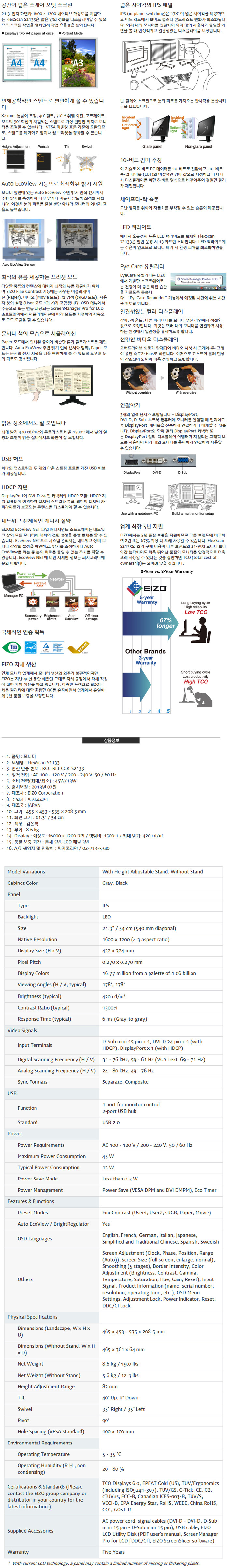 [EIZO] 에이조 FlexScan S2133