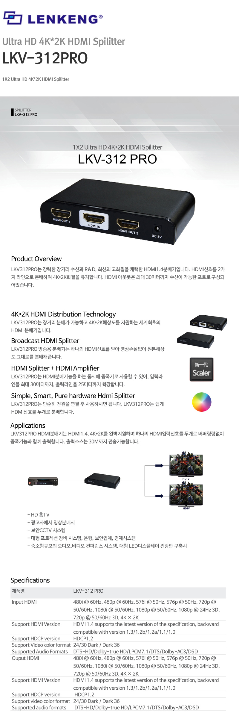 LENKENG LKV-312PRO /Ultra HD 4K*2K HDMI Spilitter/HDMI분배기